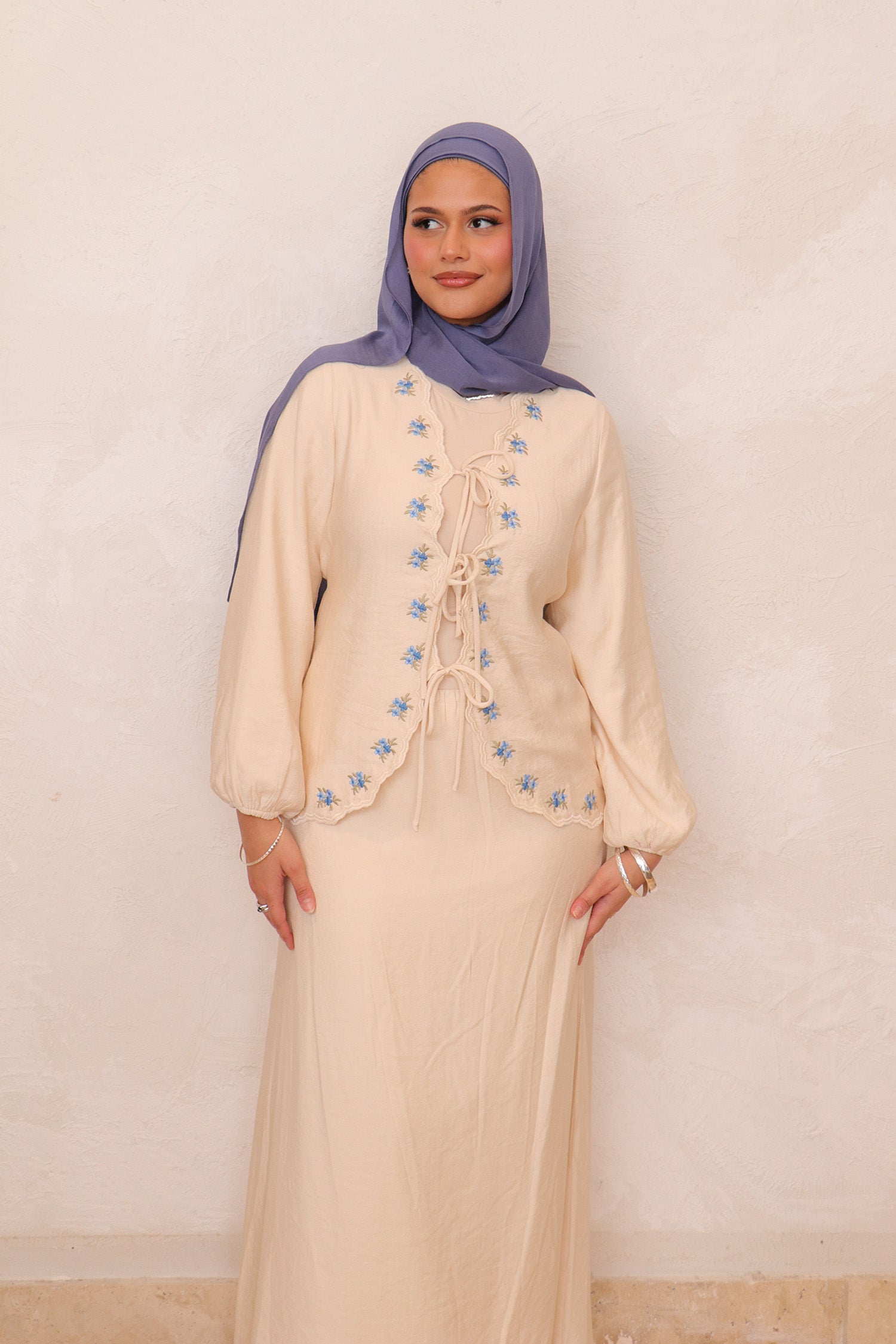 This set includes the embroidered top piece and matching skirt only — the inner long sleeve layer is not included.