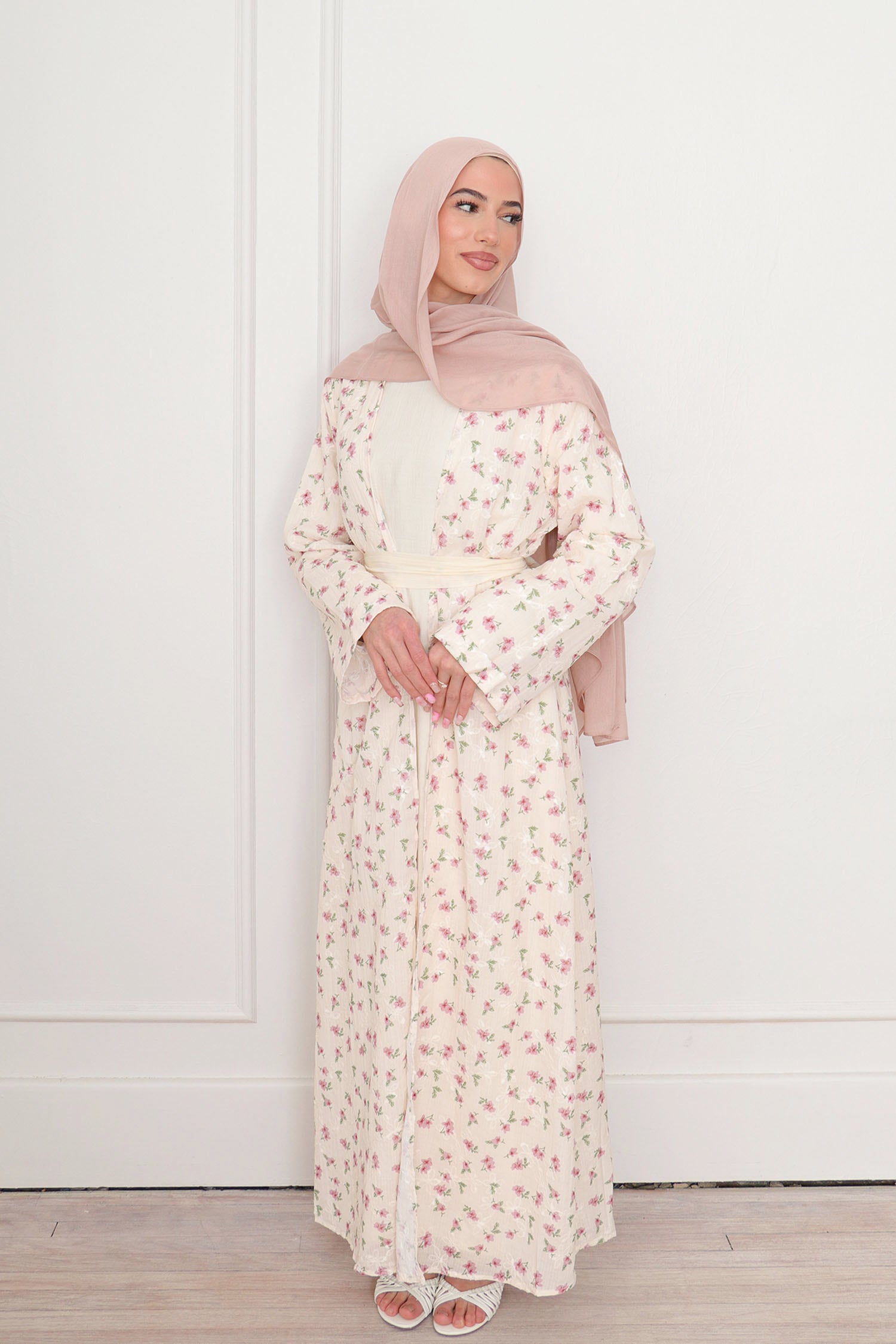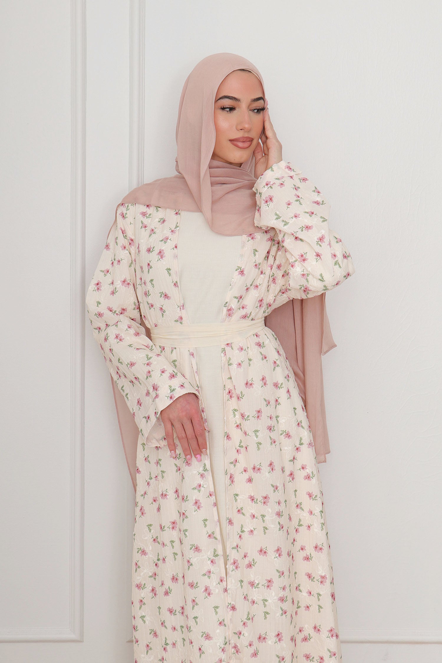 Safa Floral Abaya Set - Rose Pink